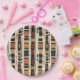 Earthy geometric pattern paper plate inspired by tribal mudcloth textiles, featuring hand-painted rectangles, diamonds, and triangles in charcoal black and terracotta on a textured beige background. A warm boho design ideal for rustic décor lovers, artisan style fans, and anyone drawn to earthy geometric aesthetics.