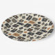 Earthy geometric pattern paper plate inspired by tribal mudcloth textiles, featuring hand-painted rectangles, diamonds, and triangles in charcoal black and terracotta on a textured beige background. A warm boho design ideal for rustic décor lovers, artisan style fans, and anyone drawn to earthy geometric aesthetics.
