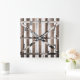 Rustic Multi Wood White & Brown Barn Door Square Wall Clock