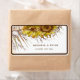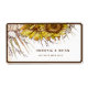 Rustic sunflower and pampas grass favor bags with unique typography. Colors are dark brown text, and mustard yellow sunflower accents. Line drawing has parchment, rust, and ochre yellow touches.