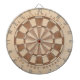 A classic dartboard design with alternating darker and lighter brown wood triangles.