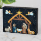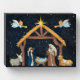 A lovely nativity scene including Mary, Joseph, and Jesus, as well as angels, a donkey and a cow.