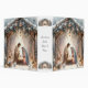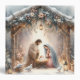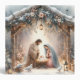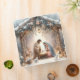 This serene nativity scene captures the peaceful beauty of the Holy Family beneath a rustic wooden stable, gently lit by lanterns and surrounded by soft snowfall. The design features Mary, Joseph, and baby Jesus in a warm, reverent moment, accentuated by delicate winter florals, snow-covered pine branches, and glowing string lights. Doves and woven baskets add a pastoral charm, while the overall soft watercolor style evokes a quiet, sacred atmosphere. Ideal for those seeking spiritual or religious Christmas decor, this artwork combines timeless symbolism with elegant seasonal touches, creating a touching and reflective holiday image. AI generated artwork.