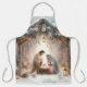 Great color and even though I ordered the kid size, it covers well enough to use during the holidays. I am not a big woman and prefer a shorter apron. I stand 5"6" and the length of the garment goes to mid-thigh. The tie straps fit well at my waist and even though there is no neck strap adjustment, the opening is plenty big enough. I am happy with the size and fit. I am sharing my apron with my 10 year old grandson, too! The color is vibrant and looks good, as shown on the website. The stitching looks strong and reinforced. Photographed is front side and back side of the apron, reinforced straps and coloring. My phone camera may not be the best at showing the details.