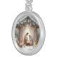 Rustic Nativity Scene with Winter Florals Silver Plated Necklace