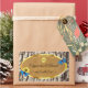 Make a lasting impression with this elegant and modern product label design featuring a brown wood grain and natural tree bark with a shimmery golden frame and cute blue butterflies.