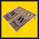 Natural Wood Cornhole Set, Yellow and Purple bags