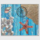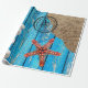 Rustic Nautical Blue Wood Burlap Starfish Wrapping Paper