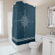 Stylish and fun, this shower curtain is the perfect decor for any yacht or beach house. The design features a rustic compass design with whitestripes at the bottom.