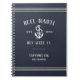 Perfect for boat captains or new boat owners, this captain's log spiral notebook features a rich, dark navy blue cover with rope stripe detailing. Customize with your boat name, year established, and ship's registry in rustic white lettering with an anchor illustration, with two additional lines of custom text beneath.