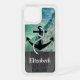 Rustic Nautical Ocean Summer Phone Case - an ocean background with a rustic looking bottom border where you can add your name. On top of the ocean background, there is a nautical anchor. This is a perfect phone case for the sailor in your life.