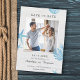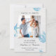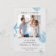 This trendy Save the Date has a nautical or beach theme. It features a white wood background for a rustic look. Watercolor style drawing of seashell, starfish, and coral decorate the design. A picture of the couple is at the center. This card is perfect for a beach wedding, summer wedding, rustic wedding, or destination wedding. The look is fresh, airy and cozy.