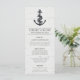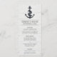 A chalkboard style anchor on an off-white wood like background. A ribbon on the anchor reads "menu." All text can be easily customized. Perfect for a nautical themed wedding, especially if going with the rustic or vintage look.