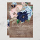 Rustic Navy Blue and Blush Flowers Bridal Shower Invitation