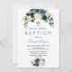 Rustic Navy Blue Blush Flowers Bloom Baptism Invitation