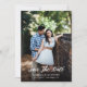 Rustic navy blue wedding photo save the date card with modern calligraphy ideal for a rustic country/barn wedding party.