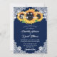 Rustic Navy Blue Burlap Lace Sunflower Wedding Invitation