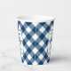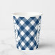 "I do" BBQ wedding paper party cups feature a rustic navy blue and white gingham tablecloth plaid patterned background with custom text for the bride and groom couple's first names that can be personalized. Perfect for a casual summer backyard wedding event.