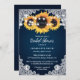 Rustic Navy Blue Lace Sunflower Bridal Shower Invitation