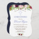 Rustic Navy Blue Marsala Floral Christening Invitation