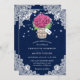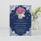 Rustic Navy Blue Pink Hydrangea Wedding Invitation