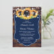 Rustic Navy Blue Sunflower Wedding Invitation
