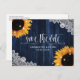 Rustic Navy Blue Sunflower Wedding Save The Date Postcard