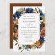 Rustic Navy Blue Terracotta Floral Fall Wedding Invitation