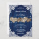 Rustic Navy Blue Wood Burlap Lace Wedding Invitation