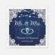 Decorate your navy blue rustic wedding party with these personalized wood and lace wedding paper napkins.