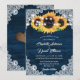 Rustic Navy Blue Wood Lace Sunflower Wedding Invitation