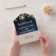 Rustic Navy Blue Wood String Light Wedding Song All In One Invitation