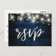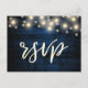 Rustic Navy Blue Wood String Lights RSVP Invitation Postcard
