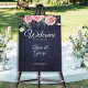 Rustic elegant blush pink flowers navy blue wedding welcome sign featuring a handwritten classic chic calligraphy script. +++++++ Ideal for a stylish floral wedding celebration or anniversary.