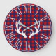 Rustic Navy Buffalo Check Plaid & Deer Antlers Large Clock