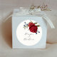Rustic floral theme favor sticker featuring watercolor illustration of navy and burgundy peony flowers with greenery.