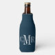 This makes a very nice personalized gift, and the initial letters monogramming is crisp and clear. Very nice drink cooler! Plus you'll always know which drink is yours! The letters are clean and crisp, the background color is a dark blue and makes a great contrast to the letters. I bought this as a gift and the recipient loves it! I would certainly recommend this, whether for yourself or for a gift. This one's got an ice cold orange cream soda in it, but you can use this nice cooler for the bottled beverage of your choice.
