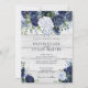 Rustic Navy Dusty Blue Watercolor Floral Wood Invitation