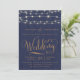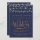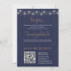 Plain white envelopes are included with paper invitations and will come to fit the invitation size you select. If you don’t need the envelopes, you may choose to not receive them by selecting the dropdown below "Envelopes" and choosing "None." If you’d like to have a design on your envelopes, you can browse all of these available envelopes to find the design that complements your Rustic Navy String Lights All In One Wedding Invitation.