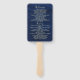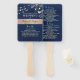 Keep your guests cool and informed with this navy blue rustic wood wedding hand fan featuring glowing string lights and delicate gold floral accents. A stylish double-sided layout includes the ceremony timeline and wedding party list, along with a personalized thank-you message from the couple. Perfect for outdoor or warm-weather weddings with elegant rustic charm.