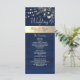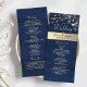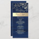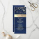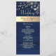 This rustic navy blue wedding program features glowing string lights and delicate gold floral artwork, perfect for a winter or barn wedding. With space for ceremony details, bridal party names, and a personal thank-you note, this elegant design brings warmth and charm to your special day.