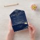 Set the tone for your romantic celebration with this rustic navy blue all-in-one wedding invitation. Designed with glowing string lights, delicate gold floral accents, and elegant calligraphy, it includes a built-in RSVP card and coordinating envelope. Ideal for fall or winter weddings, barn venues, or cozy evening ceremonies.