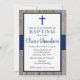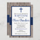 Rustic Navy & Wood Boy Baptism Invitation