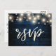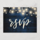 Rustic Navy Wood String Lights RSVP Meal Invitation Postcard
