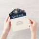 These budget-friendly Rustic Navy Wood String Light Wedding invitations are designed with an easy-to-tear-off perforated RSVP postcard. Just simply fold each card into the outlined shape, and then seal and send - no envelope needed for shipping.