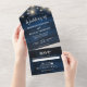 Rustic Navy Wood String Lights Wedding All In One Invitation