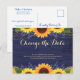 Rustic Navy Wood Sunflower Wedding Change the Date Postcard