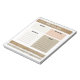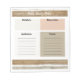 A lined notepad featuring rustic woodsy design as a header that displays the words 'Bible Study Notes' beneath it are boxes in soft neutral color variations where you can write down scriptures, observations, applications and prayer requests. The same rustic neutral stripe border along the bottom of notepad. A simplistic notepad to have on hand for taking with you to your studies, services or events.