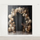 Pretty gray, gold and beige balloon backdrop with dark curtains hanging tapestry, elegant backdrop of Silver or Gold Anniversary photos, Wedding photos or any event or occasion