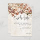 This save the date card design features a soft floral drop of soft pink blush, cream, rust, and sage green on a grunge gold background. It's part of the Rustic Neutral & Pink Floral Drop Wedding Suite created by Simply Farmhouse Press.